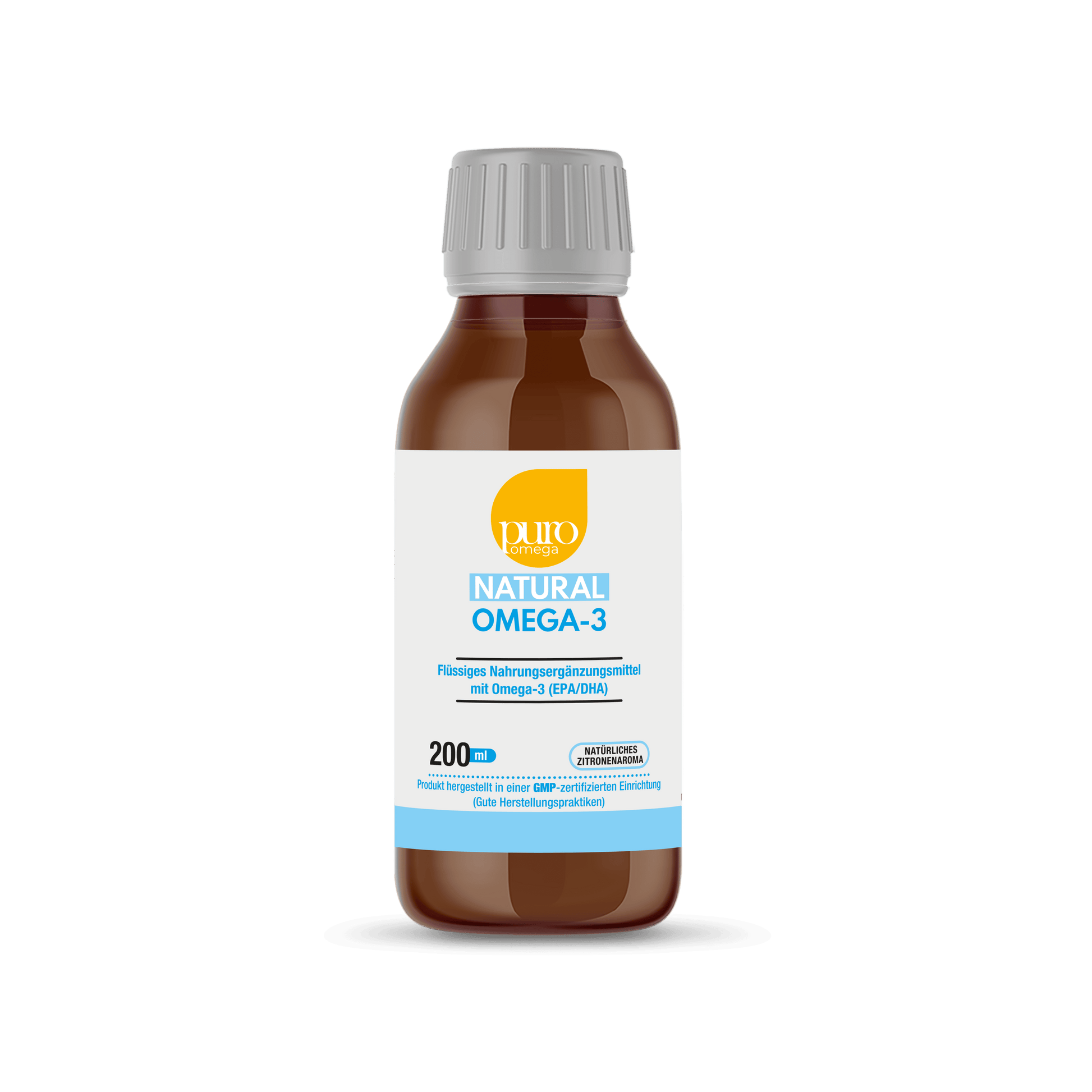 Puro Omega Natural Omega-3 ist die perfekte Wahl für gesunde Omega-3-Fettsäuren wie EPA und DHA in einer leicht aufzunehmenden, flüssigen Form. Ideal für alle, die Schwierigkeiten mit dem Schlucken großer Omega-3-Kapseln haben – geeignet für die ganze Familie, von Kindern bis zu Großeltern.