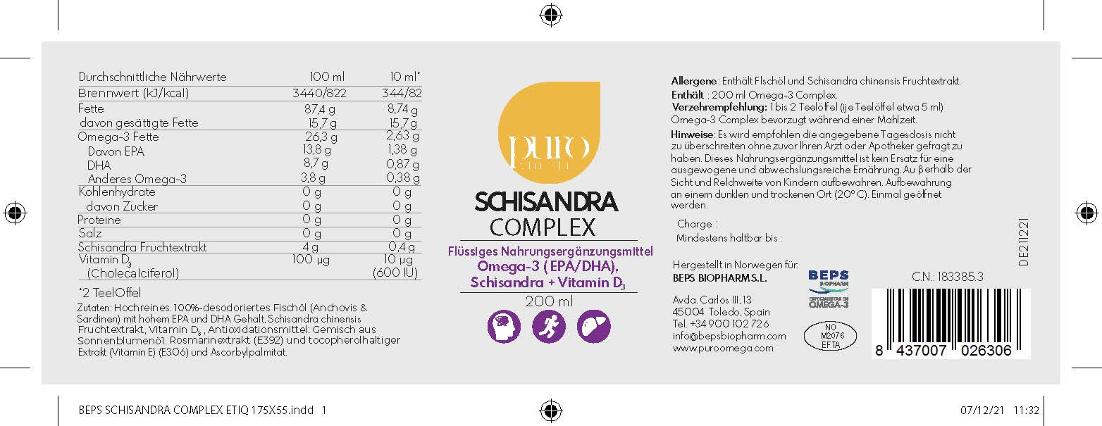 Flüssiges Omega-3 mit Schisandra von Puro Omega für Wohlbefinden und Leistungsfähigkeit (200 ml)